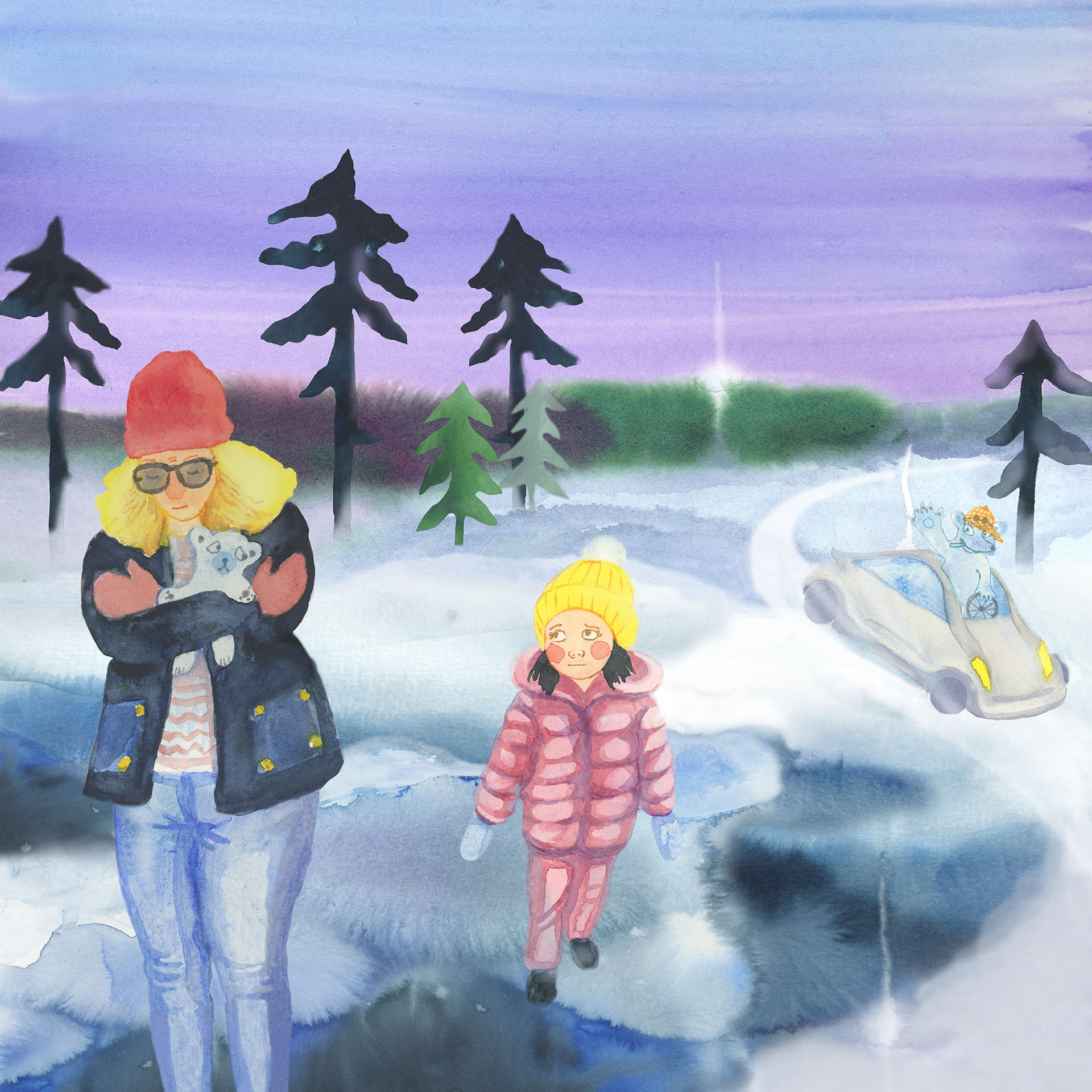 Illustrationer till Johanna Nilssons saga "Vilohemmet vid Polcirkeln" i Bland Tomtar och Troll årgång 117. Semic Förlag 2024.