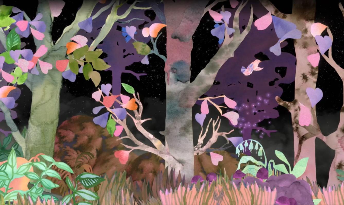 "Aquarelle forest" Interactive animation at the museum Cube of art in Uppsala December 2024 - May 2025. In collaboration with the digital based art collective n1.