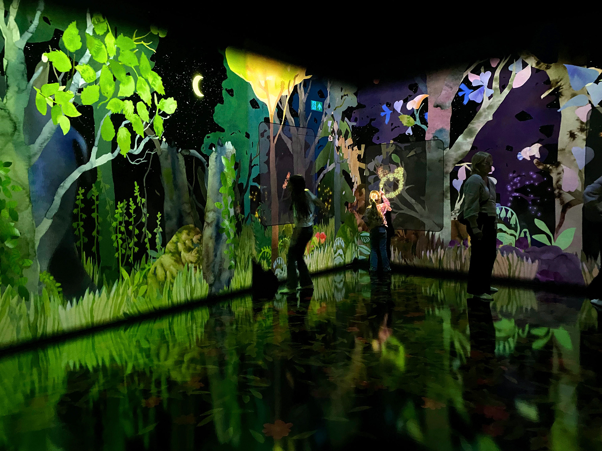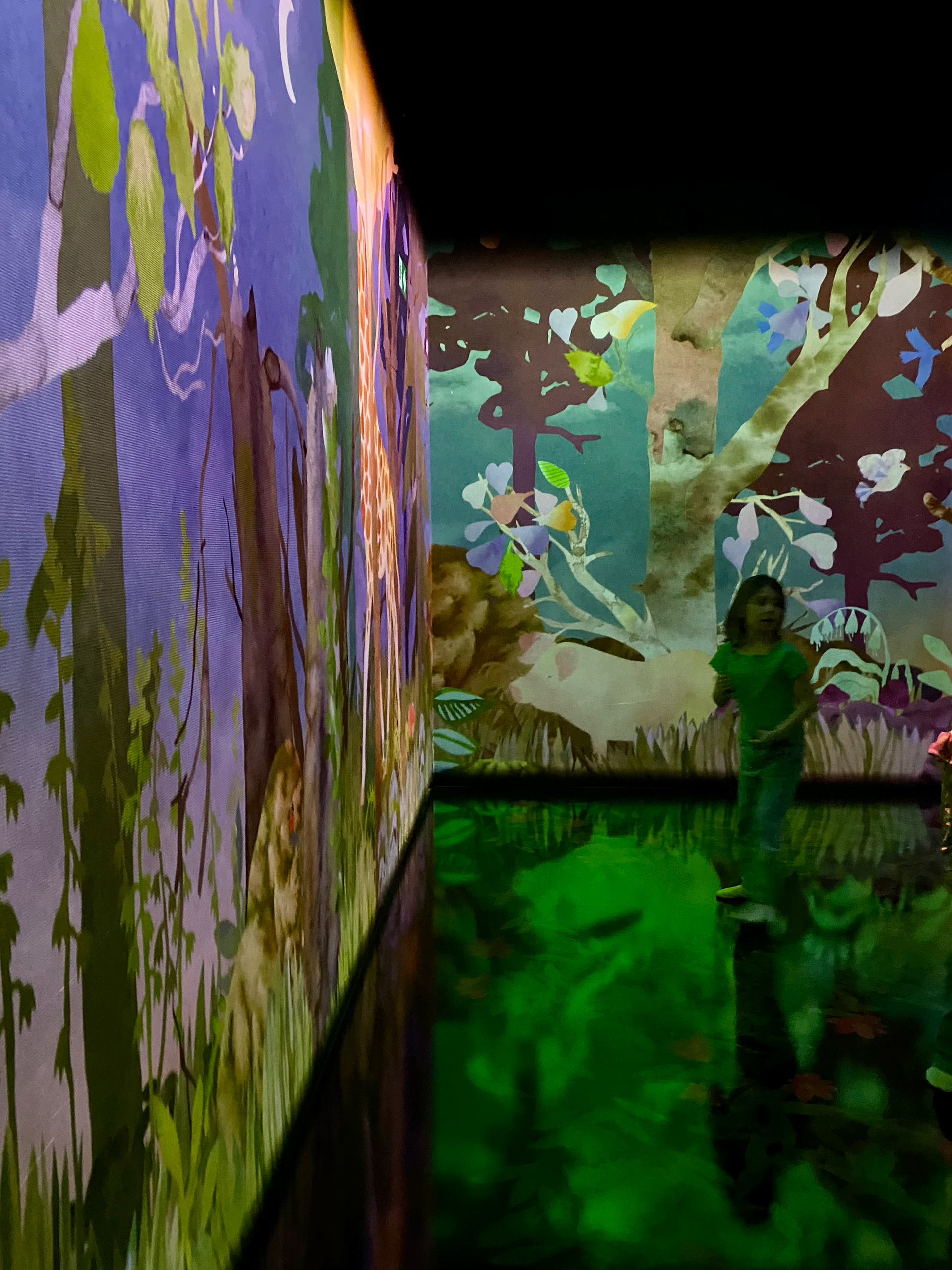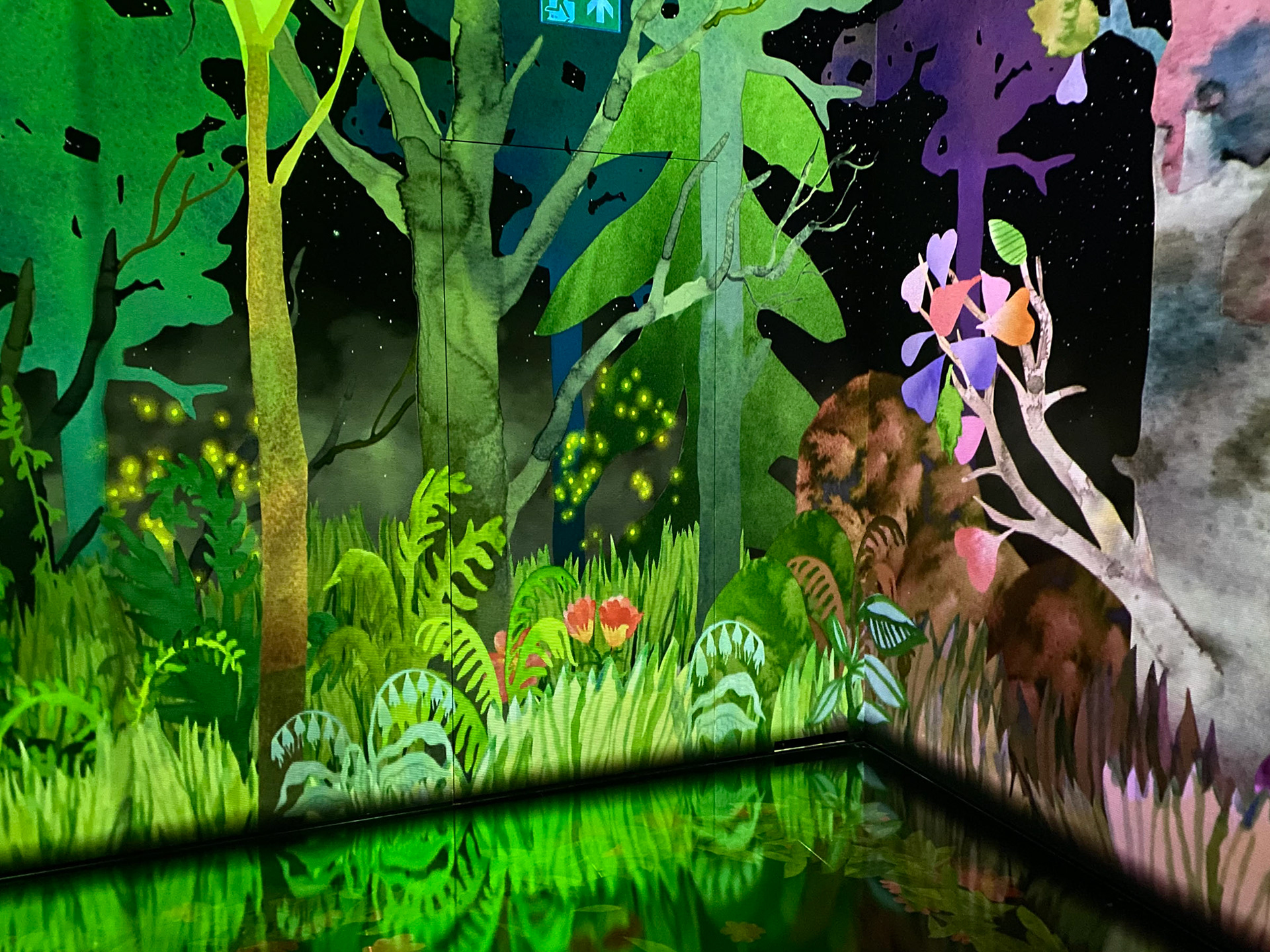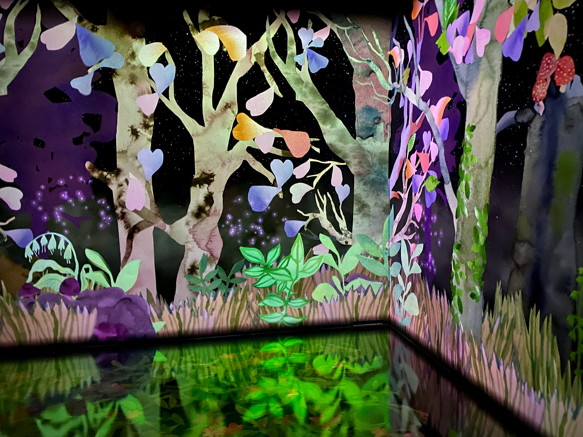 "Aquarelle forest" Interactive animation at the museum Cube of art in Uppsala December 2024 - October 2025. In collaboration with the digital based art collective n1.————————————————————————————————————————”Aquarelle forest” - interaktivt videoverk. Tillsammans med programmerarna N1 förvandlade vi mina collage av akvarell till ett interaktivt videoverk för barn. ”Aquarelle Forest” handlar om en magisk skog där besökarna själva får vara med och skapa en berättelse genom att rita djur på väggen som sedan vandrar in i skogen. Verket projecerades i ett svart rum på väggar och golv med en projectionshöjden 2,5 meter. Verket visades på Cube of Art i Uppsala december 2024 - oktober 2025.