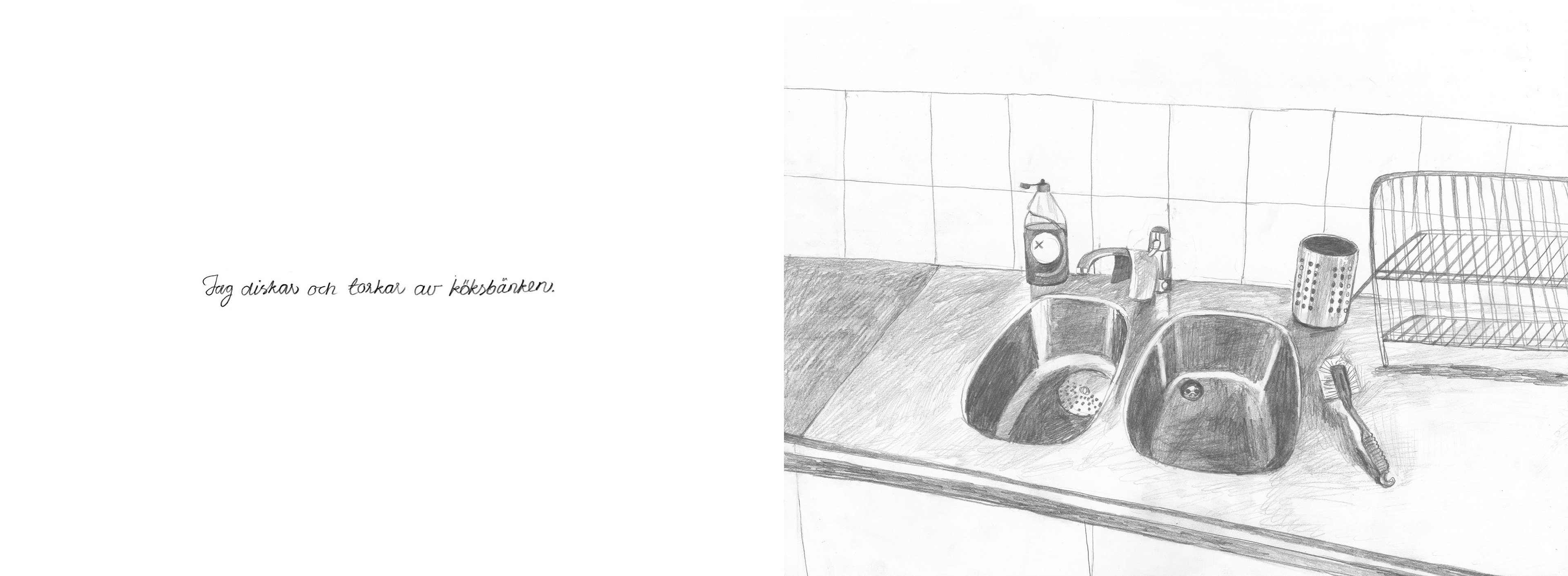 Bildberättelse inspirerad av en tids arbete inom hemtjänsten. Konstfack 2013.