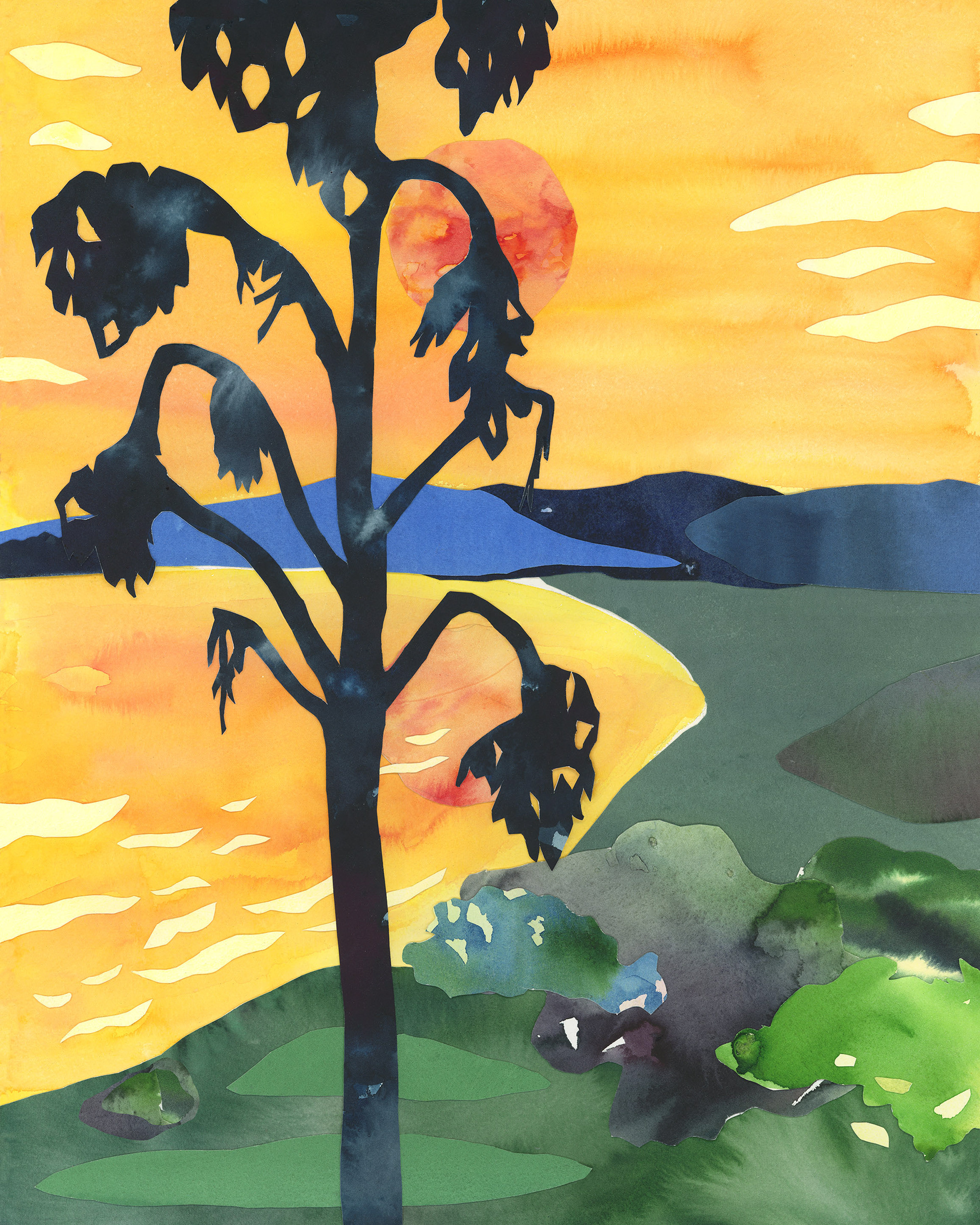 Akvarell och kollage, 40X50 cm. Grafiska blad i begränsad upplaga på Noa Gallery.