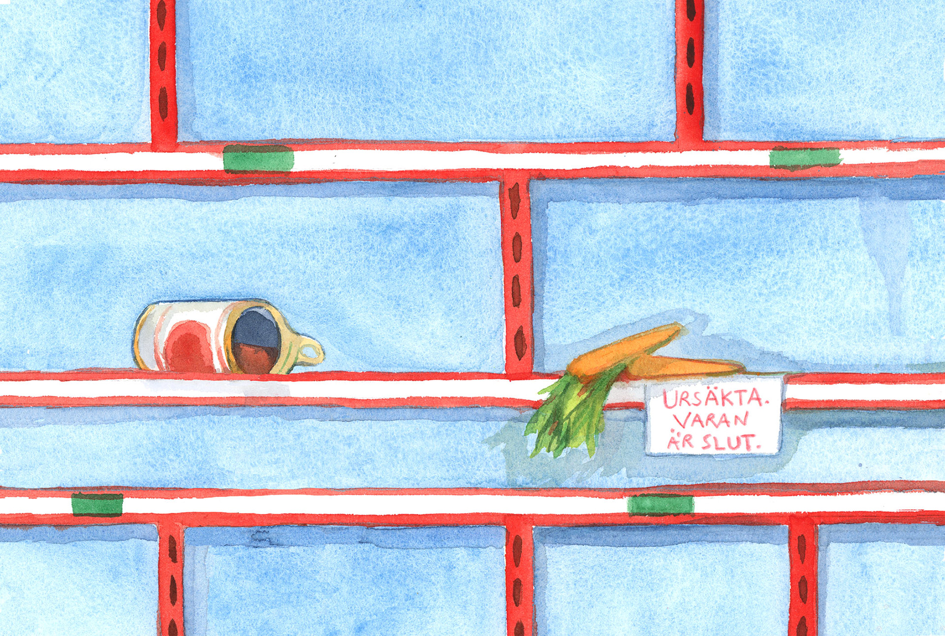Illustrationer till Kajsa Ekis Ekmans text om beredskap och privatiseringar i Sverige. För Vänsterpartiets medlemsmagasin Rött.