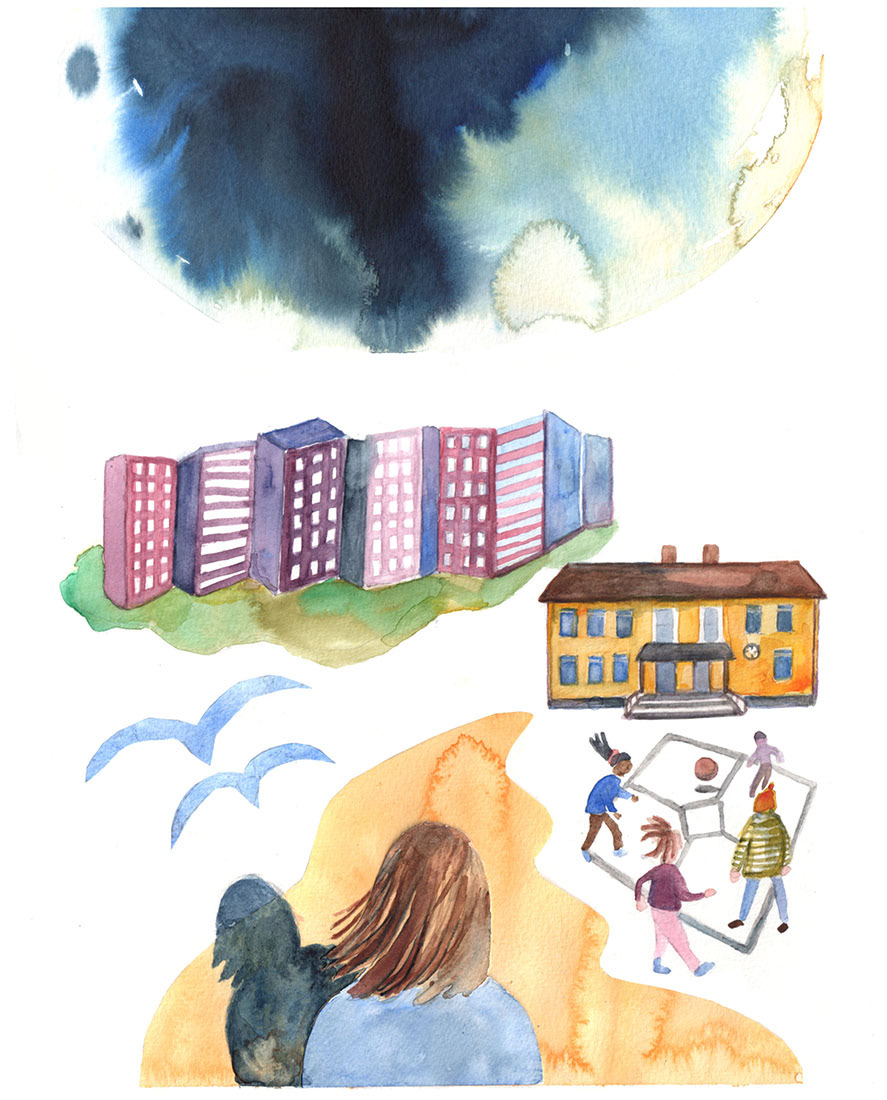 Illustationer till ett temanummer om migration. Socionomen 2017.
