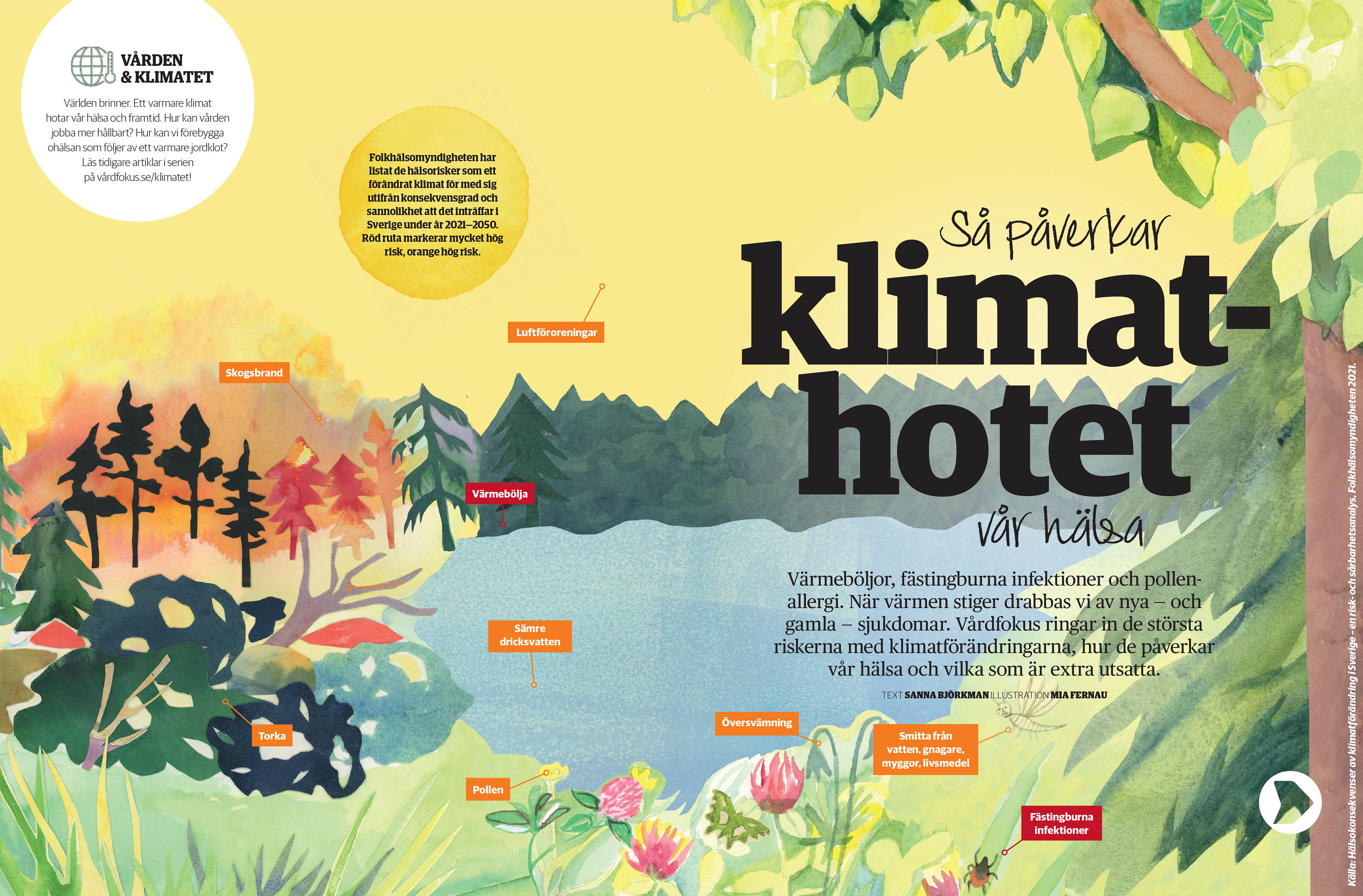 Illustrationer till artikel om hur klimatförändringarna påverkar hälsan.